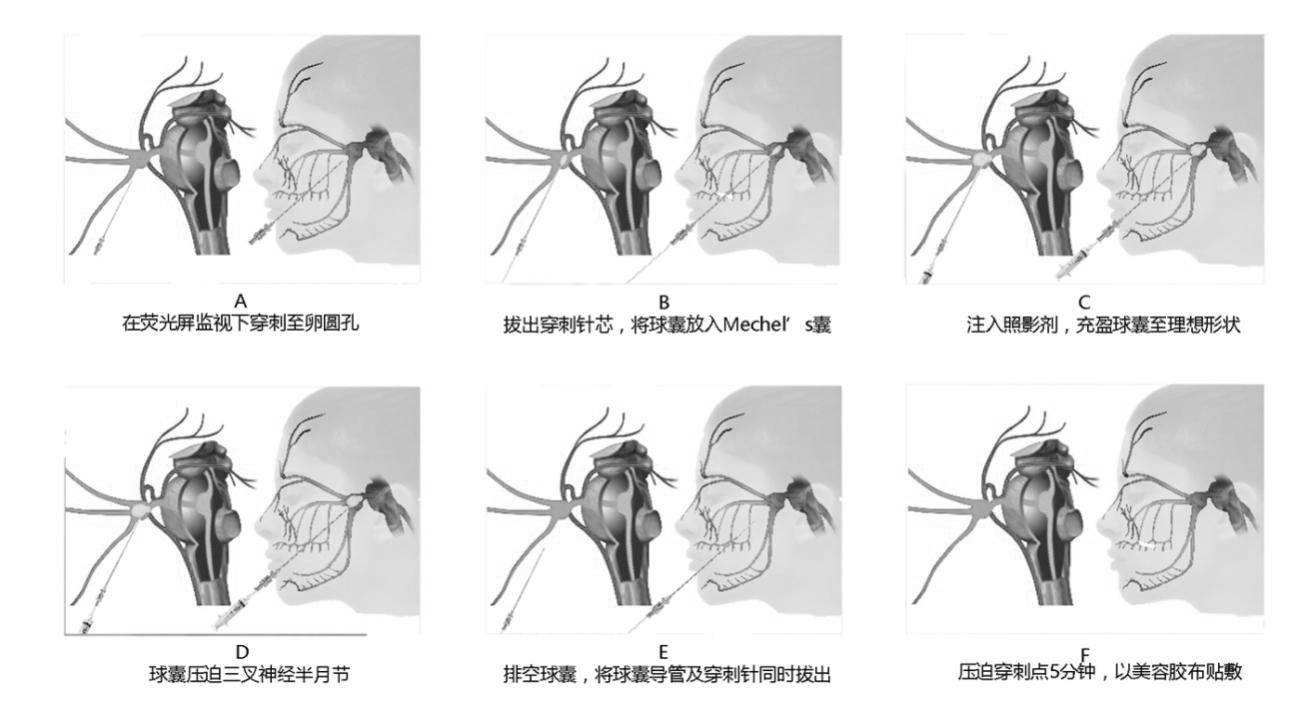 微球囊压迫术是在X线引导下,从患侧口角旁穿刺,通过一个鞘管在X线透视监视下,将一个微球囊导入Meckle's腔的三叉神经半月节,然后缓慢注入对比造影剂充盈球囊,把导致三叉神经痛的神经纤维解除卡压、并通过扩张的微球囊压迫破坏痛觉神经纤维。术后疼痛即刻缓解率高达99%。