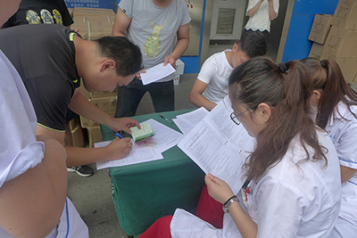 上午九点,献血活动准备工作就绪后,医院职工在献血车工作人员的指导下,认真填写献血登记表、抽血化验,经血液检验合格后开始无偿献血。这些前来献血的职工中,有工作多年的老同志,也有入职不久的新职工,有刚下夜班的工作人员,也有休假从家里赶来的,还有许多同志已经多次参加无偿献血活动。特别是在一线的医务人员,为了不影响工作也不耽误献血,同事之间轮流值班抽出时间进行献血。大家用实际行动来履行一个公民的光荣义务,表达着回馈社会、关爱社会的真挚情感和无私奉献的精神。