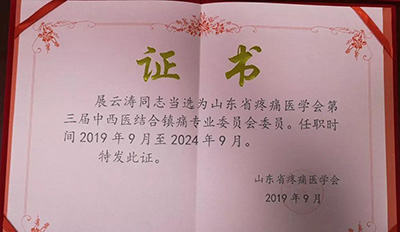 此外,山东国济脑科医院展云涛同志当选为山东省疼痛医学会中西医结合镇痛专业委员会委员。